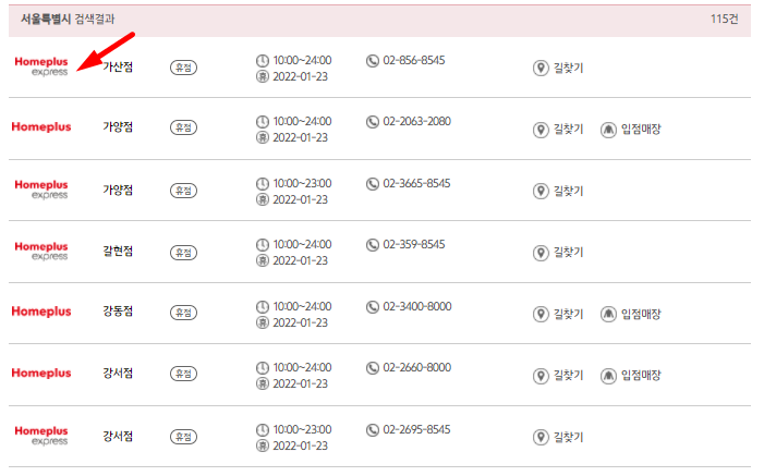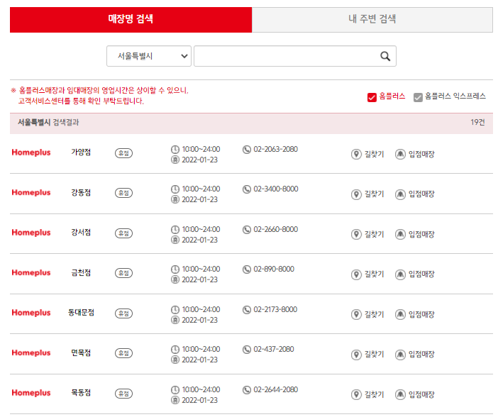 홈플러스 영업시간 매장명으로 검색하는 방법