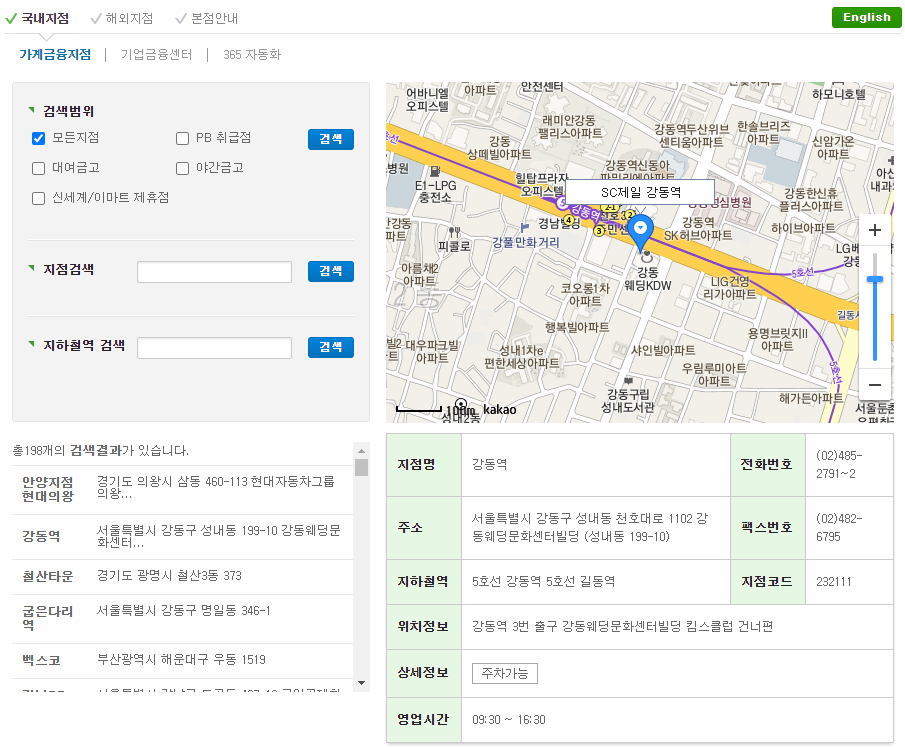 SC 제일은행 지점 검색을 통해 지점별 영업시간을 확인하실수 있습니다. 뿐만아니라 지점의 위치와 가까운 지하철 역 및 전화번호 정보까지 확인할수 있습니다.